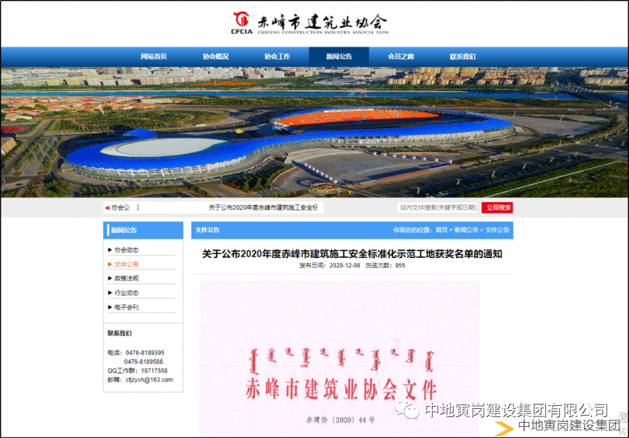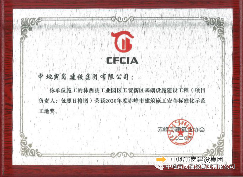 据赤峰市建筑业协会官网2020年12月8日发布消息:我司承建的林西县工业园区工贸新区基础设施建设工程,被评选为“2020年度赤峰市建筑施工安全标准化示范工地”。