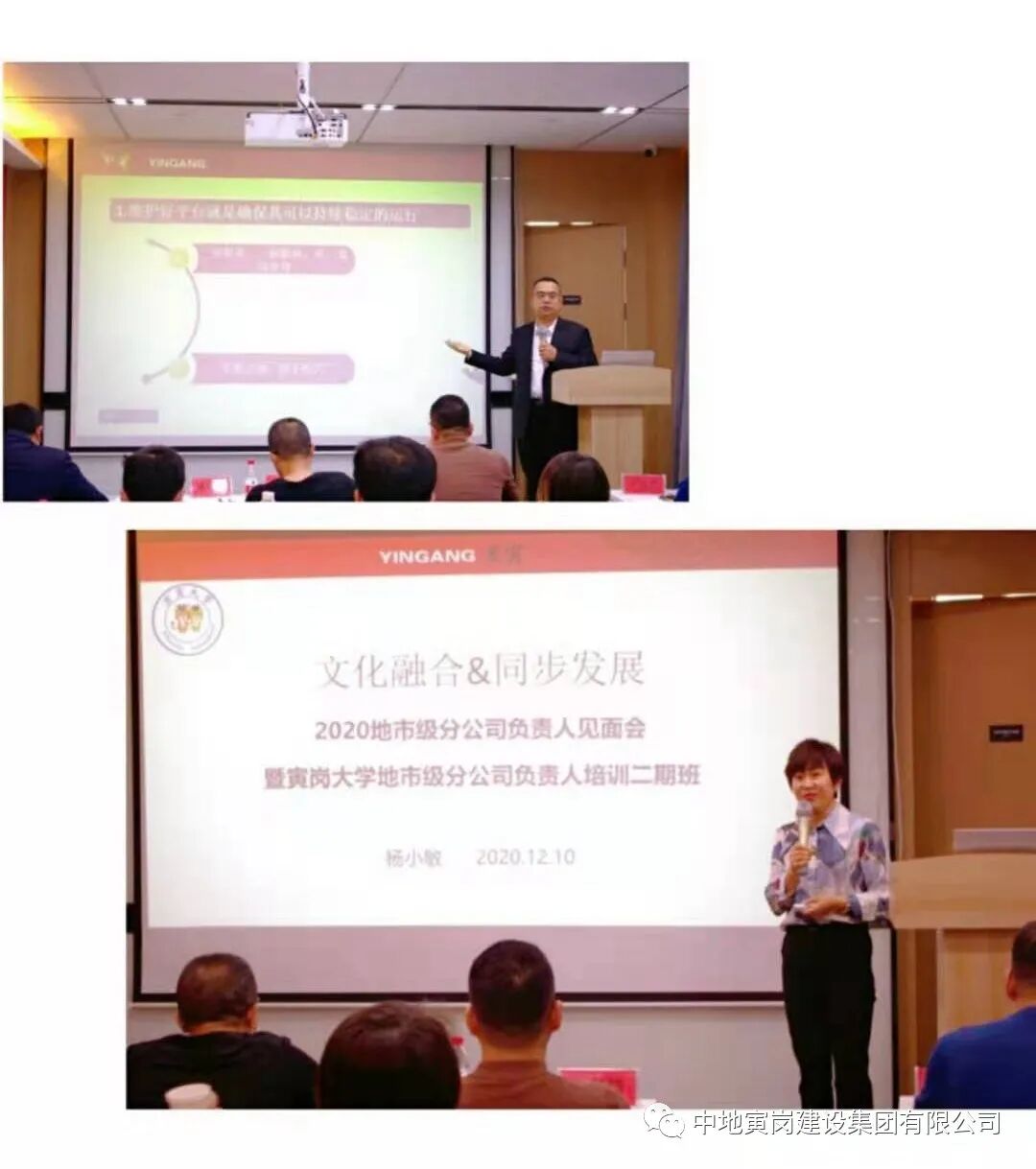 此次培训会议的后半程,我们迎来了寅岗大学校长杨小敏女士题为“文化融合·同步发展”的主题宣讲。在此次宣讲中,杨校长就寅岗集团的文化理念做出了十分详尽的阐释。在解释寅岗企业logo的寓意时,她提到,我们的愿景是要“打造一个汇聚天下建筑英才于一处”的平台,在取得共同认可的基础上,达到文化相融相生的最佳状态,打造一个集市场占有率、服务和品质同步一流的品牌企业。在谈到企业价值观时,她强调,诚信和共赢是我们一直以来奉行的核心观念,失去诚信的企业必将难以为继。