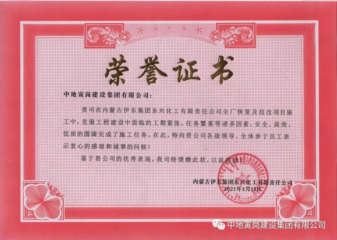 公司承建的内蒙古伊东集团东兴化工有限责任公司全厂安装工程恢复及新增工程,主要对厂区烧碱车间、聚氯乙烯车间、三氯乙烯车间、水汽车间及电仪车间的设备、管道、阀门、电气、仪表、保温、伴热等安装工程、设备现场制作进行总体施工,项目位于内蒙古乌兰察布市卓资县旗下营工业园区。
