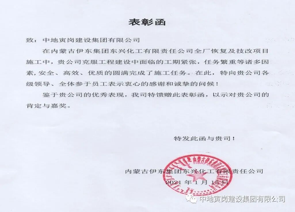 2020年4月1日正式进厂施工,公司从财力、物力、人力各方面,举全力投入到该项目的建设、管理、监督中,调动一切可以调动的力量,排除万难,历时6个月,于2020年10月30日按质、按量、按期圆满完成,并于2021年1月15日得到伊东集团表彰与认可。