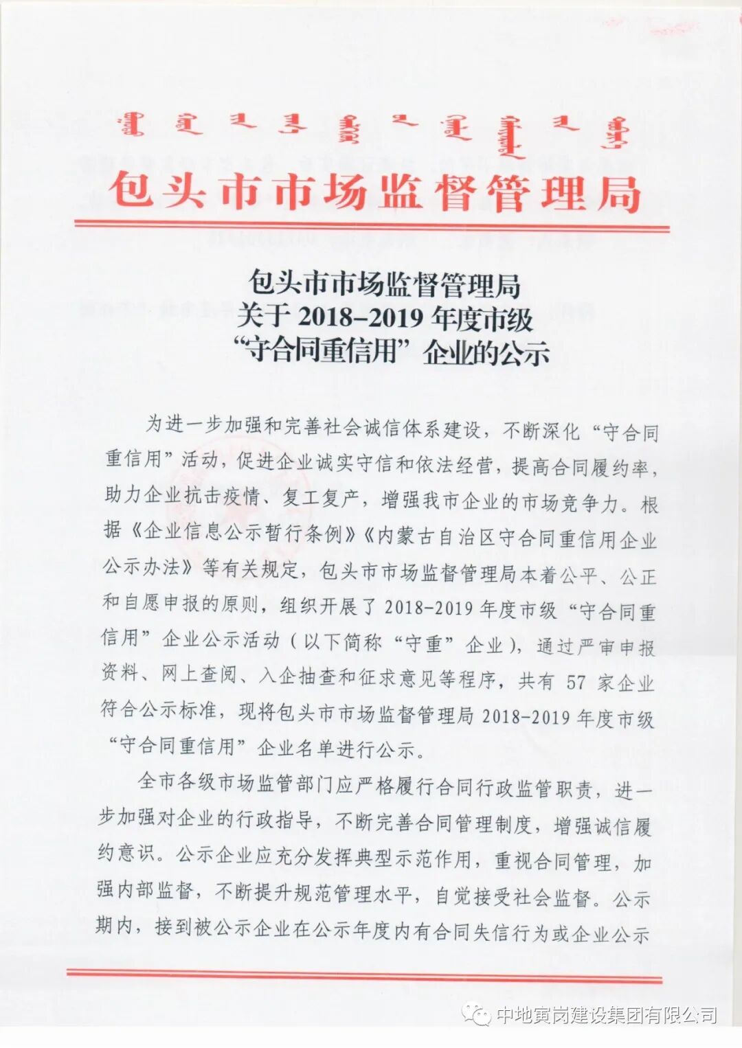 “守合同重信用”企业公示活动,是社会信用体系建设的重要组成部分,是工商部门对企业合同信用最高级别的评价,每两年评选一次,要求极为严格,标准极高。“企业和品牌具有社会影响力、合同信用管理体系健全、合同行为规范、合同履约状况好、经营效益达到较高水平、社会信誉好”是当选企业的基本条件。